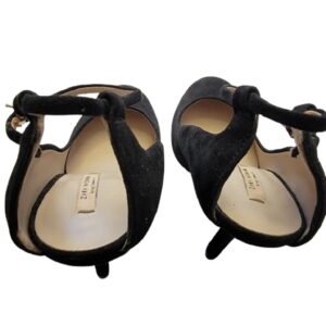 Zara spring summer 13 black suede high heel pumps. The shoes feature: black suede, ankle strap, open heel, and a round toe. The US shoe size is 8.