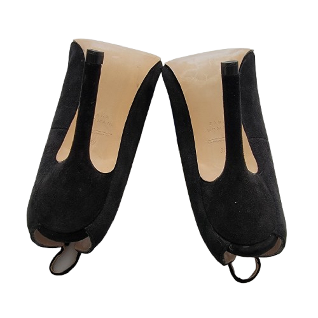 Zara Woman Open Heel Black Suede Ankle Strap Pumps Size 39