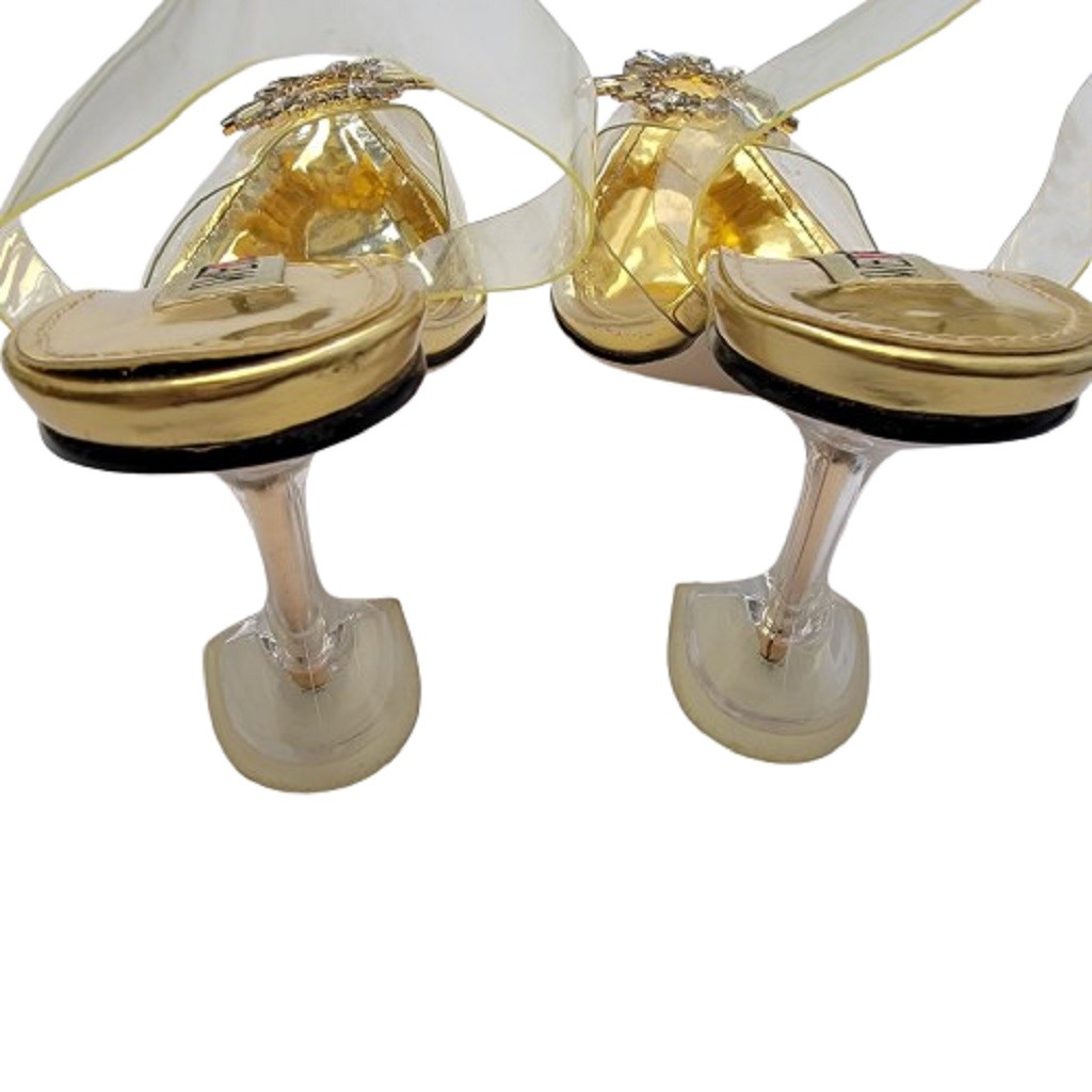 Wet kiss sling back clear rhinestone accent high heel shoes