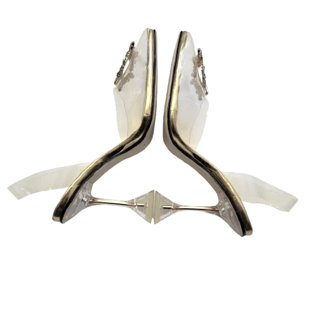 Wetkiss Clear Slingback Heels Rhinestone Accent Front Shoes Size US 7.5